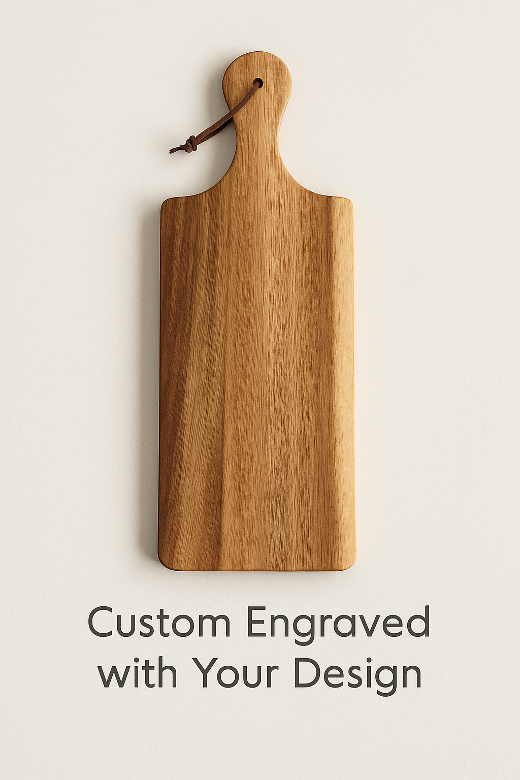 Elevate your kitchen décor and gifting moments with our Custom Engraved Acacia Wood Serving Board — a timeless piece crafted from premium acacia wood, known for its rich tones, durability, and natural beauty.