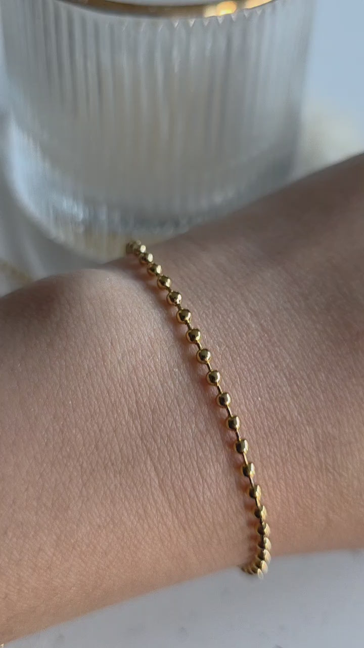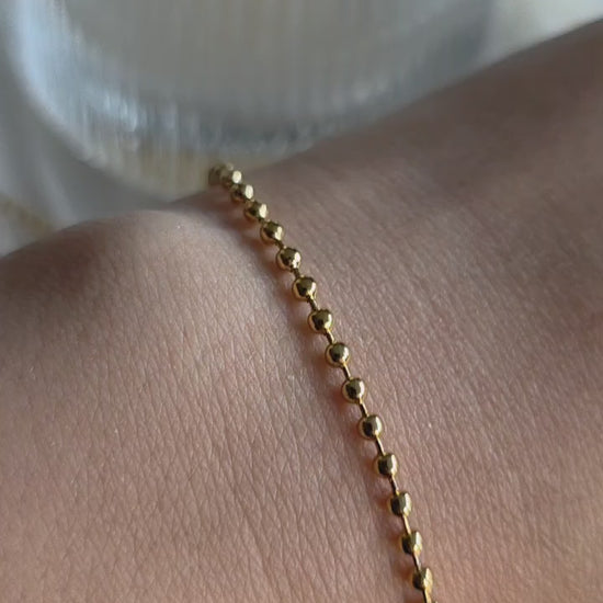Our gold beaded bracelet is a classic piece designed to match any style — wear it solo for a minimalist look or pair it with your favorite charms for a personalized touch.