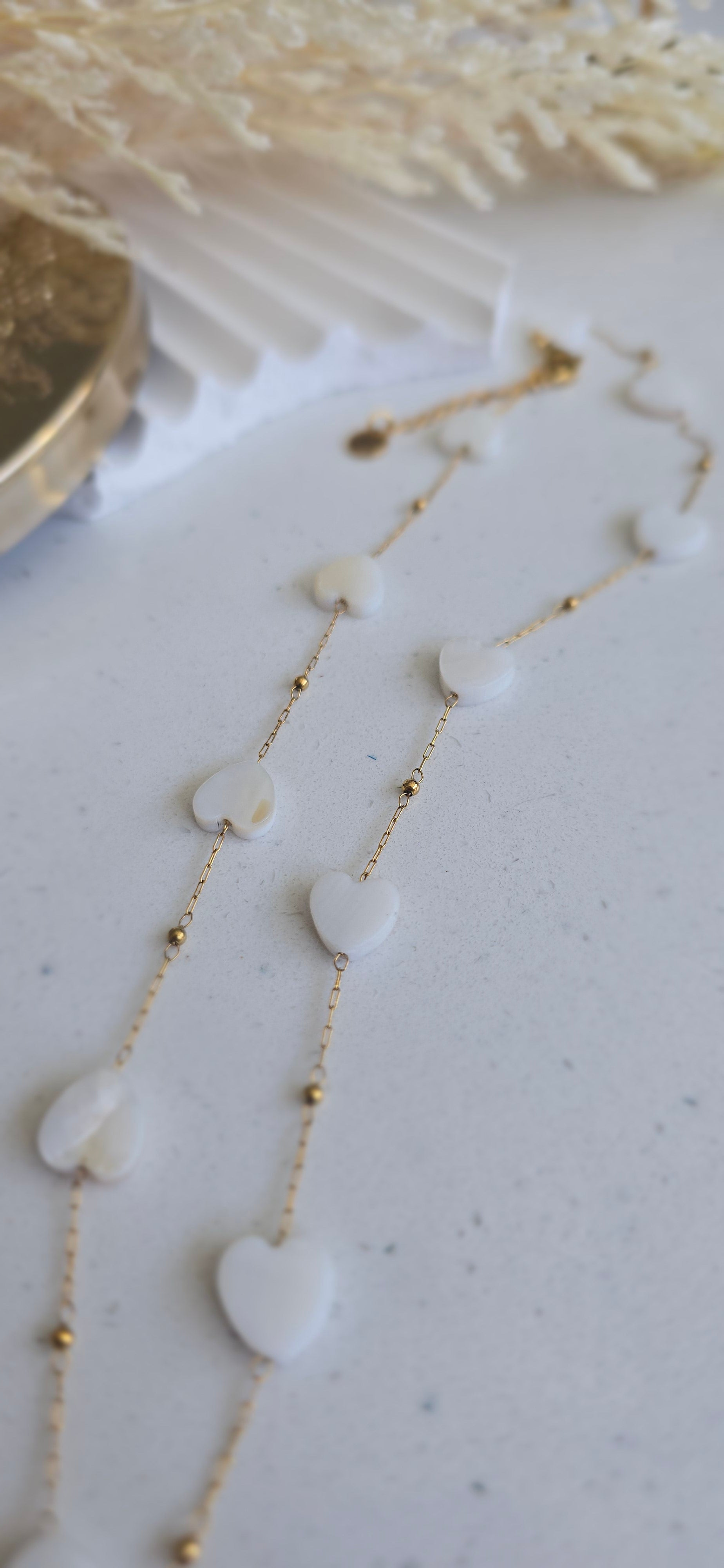 Heart-Shaped Charms: Showcases a soft, pearlescent glow that adds a touch of sophistication.
