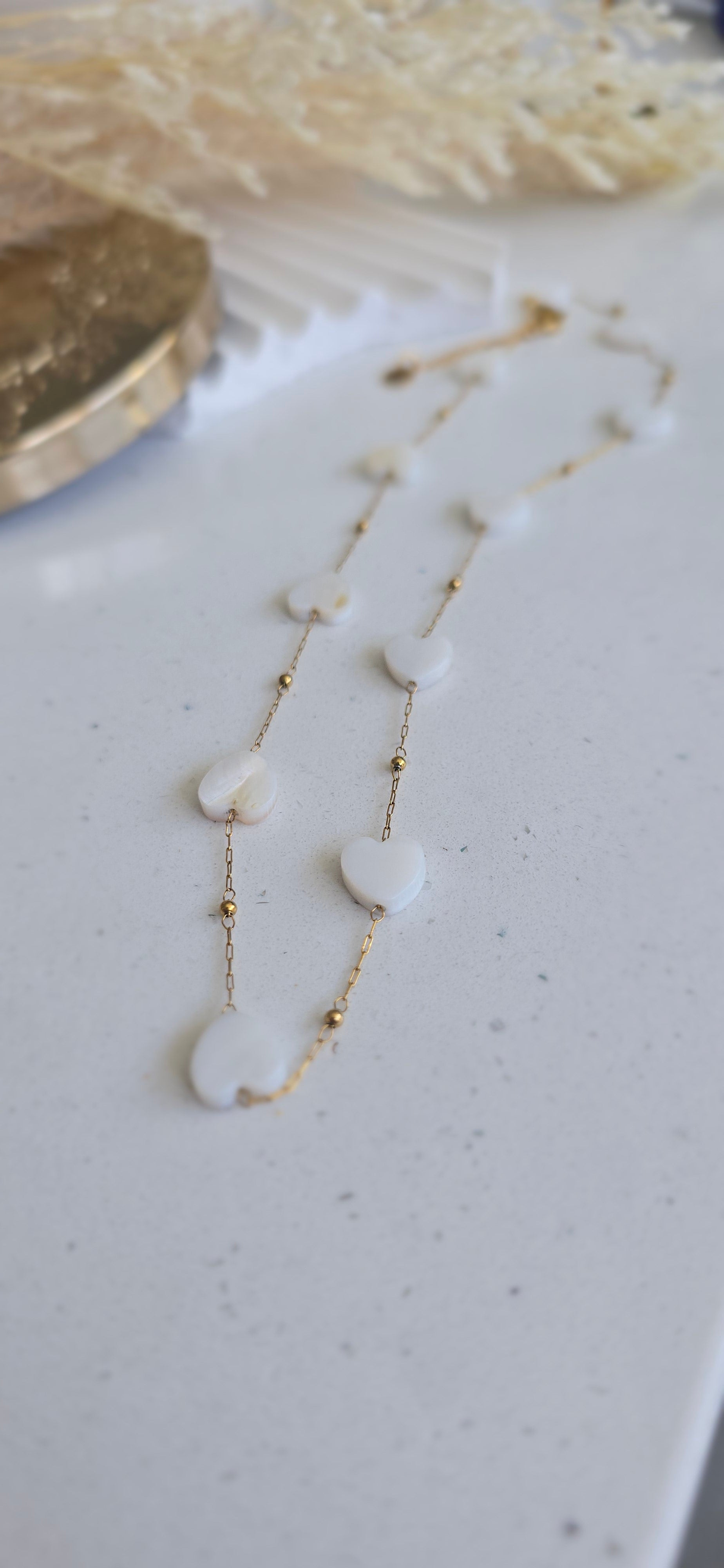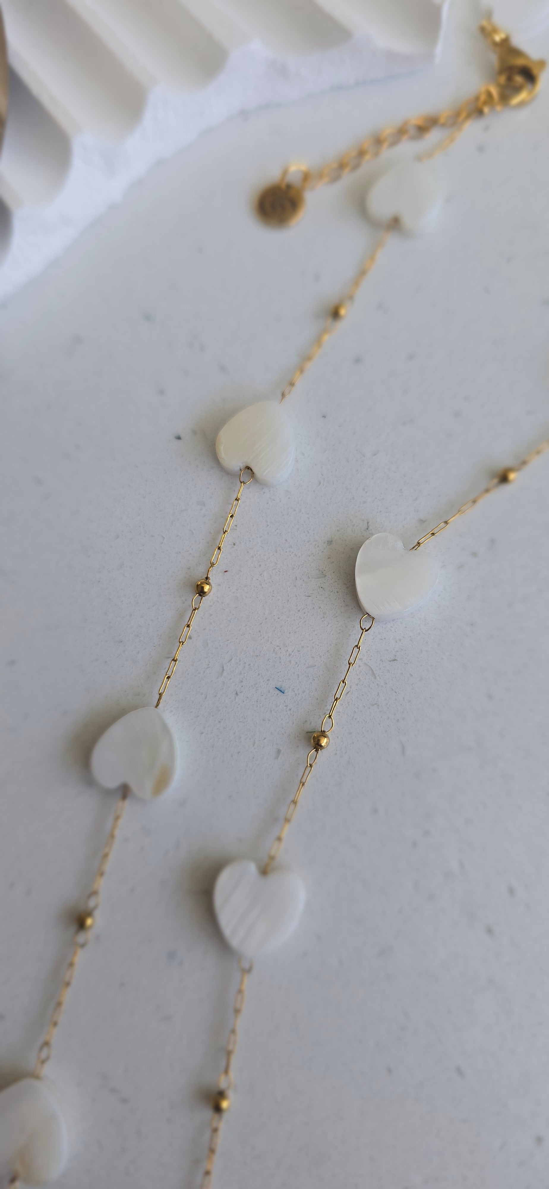 Add a delicate, romantic touch to your jewelry collection with this stainless steel necklace featuring heart-shaped charms crafted from lustrous mother-of-pearl (or a similar iridescent material). The subtle shimmer of each heart creates a timeless, elegant look, making this piece versatile enough for both everyday wear and special occasions. Designed for durability and style, it’s an easy way to elevate your favorite outfits.