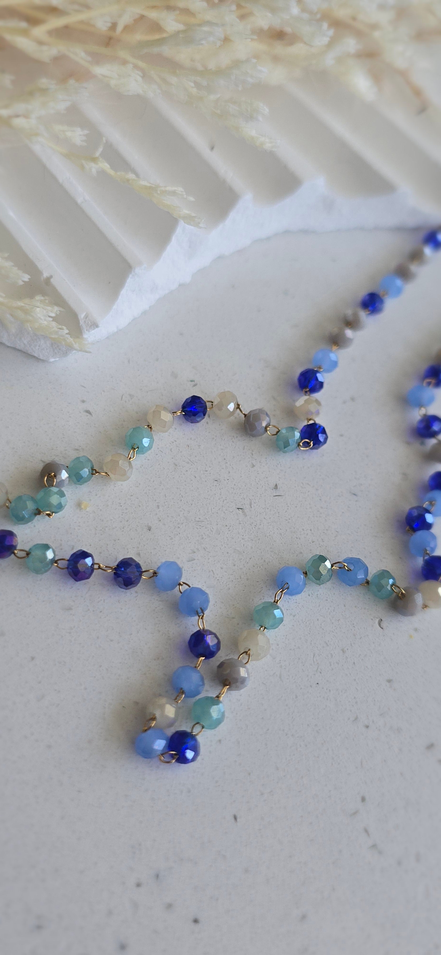Elevate your style with this stunning Ocean Glow Necklace, designed to bring a touch of elegance and serenity to your look. Featuring a harmonious blend of shimmering blue and aqua-toned beads, this necklace reflects the calming essence of the ocean and the sparkle of twilight skies.