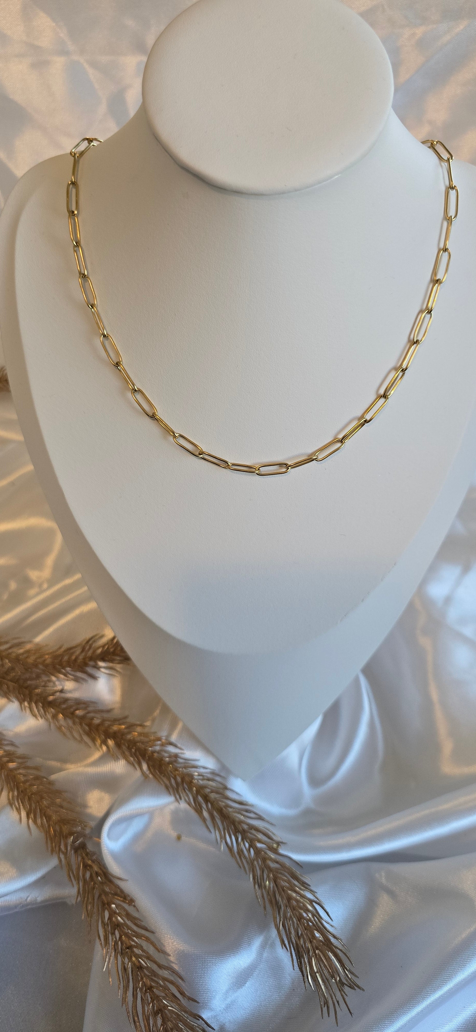This paperclip chain necklace offers a sleek, modern design that’s both simple and versatile. Perfect for wearing alone for a minimalist look or layering with your favorite pieces for added dimension. Its understated elegance makes it a timeless accessory, ideal for any occasion or style.
